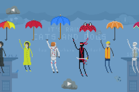 Avoid the raining cats and dogs as you fly up through the sky collecting coins. Your umbrella provides some protection, but it's not indestructible.